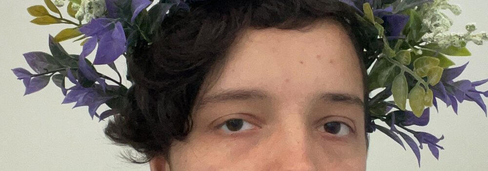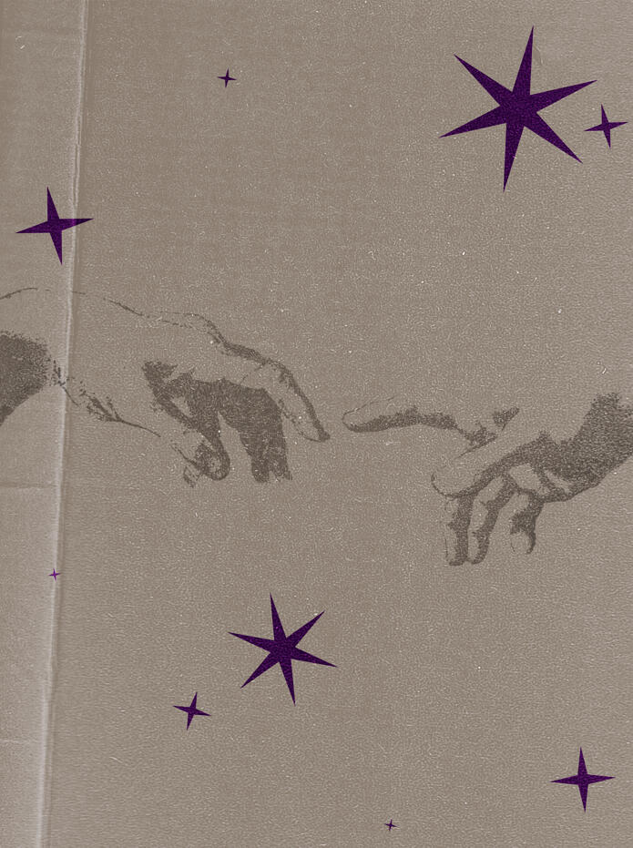 Alone, Cal could finally take in the scale of the hall. Filled with people, it felt suffocating but comforting in its heaviness. Cal paused in the centre of the marble, eyes drawn to the colours of the stained glass roof projected onto the floor. He craned his neck; he’d never had the chance to see the artworks up close and with clear eyes before.What startled Cal was how many of the sectioned windows had people in them—were stained glass windows always so populated? He studied the furthest window on the eastern side of the rose-like design first, noting the two figures stood on what could’ve been a gravel pathway. One was clearly Elijah, even with a featureless face in the glass, wearing his purple tunic. The other could be any new arrival, with their clothes so different to the devotees, facing Elijah in the sun.The next was facing south, a close-up of lips stained in purple on the inner edges. Undoubtedly a display of Elijah, Cal twisted his legs to rotate himself so that he could see the western-facing design.Cal stopped. Eyes locked on the figure depicted in the next window. His heart thudded in his throat.Was that him?Knelt on the marble in front of the altar, this figure was dressed in all white. Their hair was hard to make out in the artstyle, but it was most certainly cut neatly at his ears, curls twisting outwards. Hands outstretched bled delicate streams of ruby from eyes carved into skin.Cal’s legs felt unsteady below him. Surely that wasn’t him, it couldn’t be. The communion hall had been built so long ago, and these windows were certainly made around the same time. His eyes darted to the eastern-facing window, of the new arrival in their light blue t-shirt and cargo pants, feet covered by-Were those his work boots?He’d been wearing those clothes the day he arrived.His gaze moved to the close-up on the southern side, now, staring closer at the details. A small dimple underneath the centre of the person’s bottom lip assigned them to a name. They were his, too, lip ring scar and all. Cal spun almost rabidly to the northern-facing window, barely keeping his heart from leaping out of his mouth. His eyes tried to make out the scene in front of him into something that made sense, but nothing was backed up by sense in this place.
